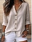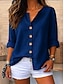 Naisten Paita Puuvillaiset pellavapaidat Painike ylös Pusero Napit Yhtenäinen väri Perus Vapaa-aika 3/4 hiha V kaula-aukko Tavalliset topit Päivittäin Musta Valkoinen Rubiini Khaki Kesä