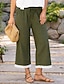 Naisten 3/4-pituiset housut Pellavaiset Capri-housut Muoti Perus Vasikka-Length Keskikorkea vyötärö Tavallinen Kurenauha Tasku Joustava vyötärö Kevyt Hengittävä Joustamaton Loma Katu Arki-asut Tumman