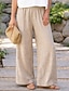 Naisten puuvilla-/pellavahousut baggy-housut lomahousut rentoja arkikäyttöön täyspitkät keski-korkea vyötärö yksivärinen yksinkertainen narusäätö taskut leveät lahkeet mukavat nopeasti kuivuvat