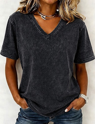 Naisten Cotton Blend Pusero Tilkkutäkki Painettu Kuvitettu Tyylikäs Klassinen Moderni Lyhythihainen V kaula-aukko Tavalliset topit Päivittäin Pyhäpäivä Bile Valkoinen Keltainen Tumman sininen Harmaa
