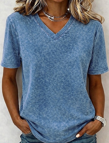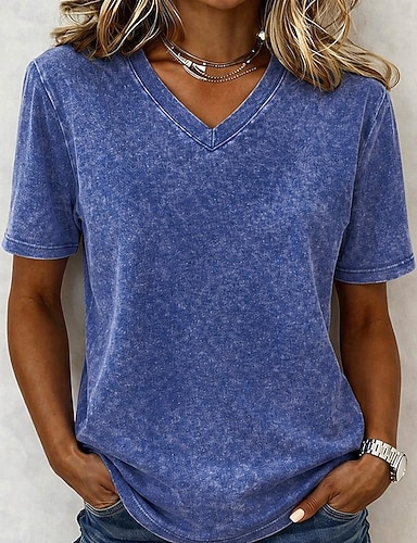Naisten Paita Tekstuuripusero Kesän yläosat Tavallinen Tyylikäs Klassinen Lyhythihainen V kaula-aukko Pitkät topit Kausaliteetti Vaaleanbeesi Vaalean vihreä Vaalea purppura Kesä Kevät