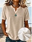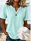Naisten Puuvillaiset pellavapaidat Tasku Napit Yhtenäinen väri Päivittäin Perus Vapaa-aika Puolihiha Tiukka pyöreä kaula-aukko Tavalliset topit Päivittäin Sininen Rubiini Apila Tumman harmaa Kes