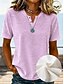 Naisten Paita Cotton Blend Pusero Napit Tavallinen Perus Moderni Lyhythihainen Tiukka pyöreä kaula-aukko Tavalliset topit Päivittäin Pyhäpäivä Sininen Valkoinen Punastuvan vaaleanpunainen Oranssi