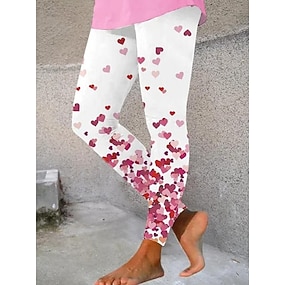 Naisten Leggingsit Loma Vintage Etninen tyyli Täyspitkä Korka vyötäröPantsYstävänpäivä Sydän Kuvitettu Pehmeä Mukava Elastinen Päivittäin Koti ulko- Musta Valkoinen Kesä Kevät Syksy Talvi Tyköistuva