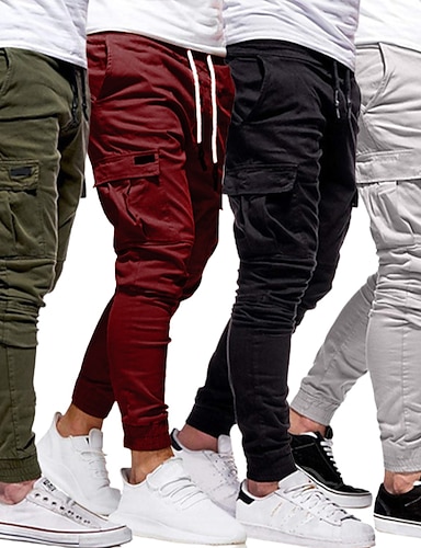 Miesten Reisitaskuhousut Cargo Housut Lenkkeilijät Jogger Housut Joustava vyötärö Läppätasku Yhtenäinen väri Bile Viikonloppu Katutyyli Tyylikäs Musta Rubiini