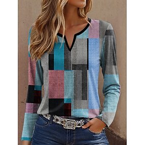 Naisten T-paita Painettu Kuvitettu Geometrinen Vintage Tyylikäs Vapaa-aika Pitkähihainen Lovitettu kaula Tavalliset topit Päivittäin Viikonloppu Sininen Keltainen Purppura Apila Kevät Syksy Talvi