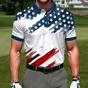 4. heinäkuuta 2026 250. Miesten Amerikan lippu Polo Lyhythihainen Poolopaidat Kauluskäänne Vapaa-aika Urheilu- ja treenivaatteet Arki-asut Festivaalivaatteet 3D-tulostus Napit Kesä Sininen Valkoinen