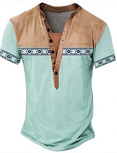 Miesten Tribaali Etninen T-paita Henley-paita T-paidat Lyhythihainen Suunnittelija Perus Etninen ulko- Kausaliteetti Päivittäin Kesä Vaalean vihreä Vaalean sininen Henley Henley T-paita