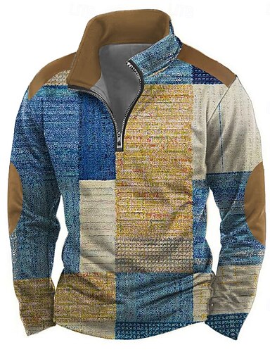 Miesten Geometrinen Abstrakti College Vapaa-aika Pitkähihainen Stand-kaula-aukko Loma Katuvaatteet Sininen Purppura Harmaa Vetoketju Neljänneksen postinumero Syksy Talvi Suunnittelija S M L XL XXL 3XL