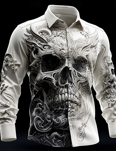 Miesten Pääkallot Monimutkainen kukka Paita Button Up paita Pitkähihainen Tumma goottilainen tyyli ulko- Pyhäpäivä Kevät Syksy Sänkyjen avaus 3D-tulostus kauluspaidat Valkoinen 1 Valkoinen