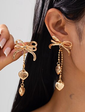 Naisten Korvarenkaat Geometrinen Sydän Kallisarvoinen Rusetti Tyylikäs Muoti söpö tyyli Timanttijäljitelmä korvakorut Korut Hopea / Kultainen Käyttötarkoitus Häät Juhla Päivittäin 1 pari