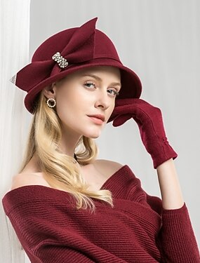 hatut 100 % villaa baretti hattu keila / cloche hattu häät teejuhlat elegantit rusetin puhtaan värin päähine