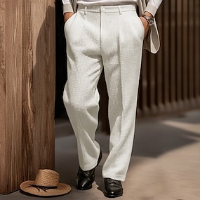 Miesten Housut Puvunhousut Roikkuvat housut Vohveli housut Tasku Leveä reisi Tavallinen Hengittävä Täyspitkä Muodollinen Juhla liiketoiminta Loma Muoti Musta Valkoinen Joustamaton