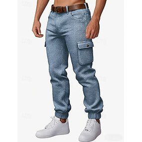 Miesten Reisitaskuhousut Lenkkeilijät Housut Vohveli housut Monitasku Läppätasku Yhtenäinen väri Mukavuus Käytettävä Päivittäin ulko- Pyhäpäivä Katutyyli Tyylikäs Musta Taivaan sininen