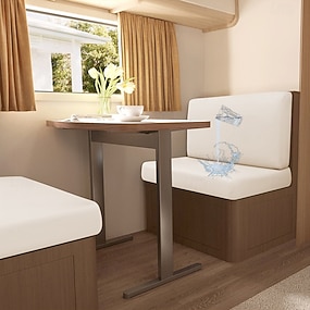Vedenpitävät, maitosilkkistä joustavat ruokailutyynynpäälliset, paksut, kestävät ja liukumattomat - helppo puhdistaa, kaikkiin vuodenaikoihin sopiva suoja matkailuauton istuimille