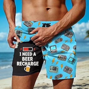 Miesten Olut Pelikonsoli Hauska slangi Vuoratut shortsit 2 in 1 uimashortsit Uimashortsit Keskivyötärö Retro / vintage Pyhäpäivä Sivutaskut Compression Linerin kanssa Joustava kiristysnyöri vyötäröllä
