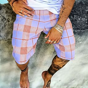 Miesten Geometrinen Ruudukko / Plaid Hiki shortsit Rantahousut Terry Shortsit Keskivyötärö Muoti rento Päivittäin Katuvaatteet Pyhäpäivä 3D-tulostus Joustava kiristysnyöri vyötäröllä Suunnittelija