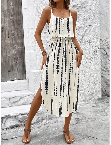 Naisten Midimekko Kesämekko Tyylikäs Virtaava Loma Koti Deitti Loose Fit Kuvitettu Hihaton Olkaimellinen Aprikoosi Kesä