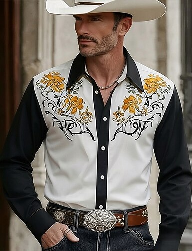 Miesten Etninen Monimutkainen kukka Kukat Länsimainen paita Button Up paita Cowboy paita Pitkähihainen Läntinen Vintage retro Kausaliteetti ulko- Kevät Syksy Sänkyjen avaus kauluspaidat Kaksi