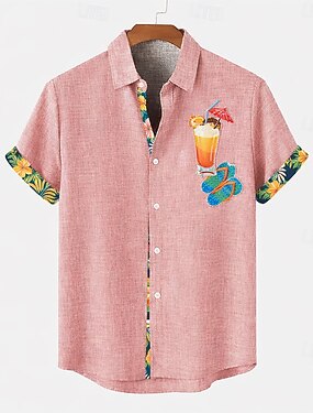 Miesten Paita Pellava paita Kesä paita Rantapaita Button Up paita Kukat Kausaliteetti Pyhäpäivä Vaalean vihreä Punastuvan vaaleanpunainen Taivaan sininen Apila Lyhyt hiha Sänkyjen avaus Kesä Vaatetus