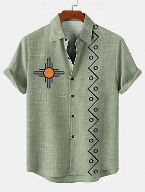 Miesten Paita pellava paita retro paidat Vintage paita Etninen paita Päivittäin Sininen Apila khaki Lyhythihainen Sänkyjen avaus Kesä Kevät Vaatetus
