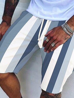 Miesten Shortsit Liinavaatteet Kesähousut Rantahousut Tasku Kurenauha Joustava vyötärö Raita Mukavuus Hengittävä Polven pituus ulko- Pyhäpäivä Hiekkaranta Loma Vapaa-aika Musta Valkoinen