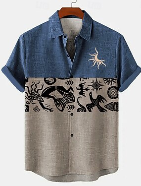 Miesten symboli Pellava paita Havaiji paita Button Up paita Lyhythihainen Vintage Taiteellinen Loma Pyhäpäivä Ranta-asut Kesä Kevät Sänkyjen avaus kauluspaidat Sininen Purppura Apila