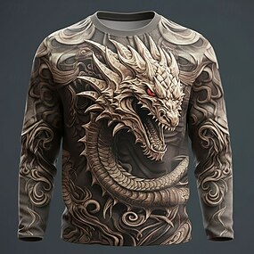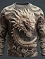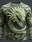 Miesten Lohikäärme T-paita Pitkähihainen T-paita 3D-tulostus Tiukka pyöreä kaula-aukko Paita Muoti Fantasia Katu Kausaliteetti Päivittäin Keltainen Rubiini Apila Kesä Kevät Vaatetus S M L XL XXL XXXL