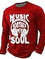 Miesten Musiikki T-paita Pitkähihainen T-paita 3D-tulostus Tiukka pyöreä kaula-aukko Paita Päivittäin Vapaa-aika Päivittäin Matkailu Juhla Sininen Musta Rubiini Kesä Kevät Syksy Vaatetus S M L XL XXL