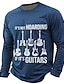 Miesten Musiikki Kitara Hauska slangi T-paita Pitkähihainen T-paita 3D-tulostus Tiukka pyöreä kaula-aukko Paita Muoti Päivittäin Perus Kausaliteetti Päivittäin Katu Sininen Musta Rubiini Kesä Kevät