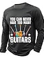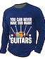 Miesten Kitara Hauska slangi T-paita Pitkähihainen T-paita 3D-tulostus Tiukka pyöreä kaula-aukko Paita Muoti Päivittäin Perus Kausaliteetti Päivittäin Katu Sininen Musta Keltainen Kesä Kevät Vaatetus