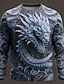 Miesten Eläin Lohikäärme 3D T-paita Pitkähihainen T-paita 3D-tulostus Tiukka pyöreä kaula-aukko Paita Muoti Perus Katu Kausaliteetti Päivittäin Sininen 2# Sininen 1# Kesä Kevät Vaatetus S M L XL XXL