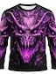 Miesten Kuvitettu Liekki Pääkallot T-paita Pitkähihainen T-paita 3D-tulostus Tiukka pyöreä kaula-aukko Paita Muoti Suunnittelija Vapaa-aika Urheilu ja ulkoilu Pyhäpäivä Bile Syvä violetti Keltainen