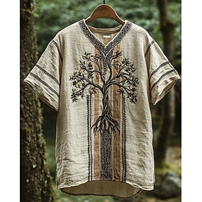 Miesten T-paita T-paidat Lyhythihainen paita Lyhythihainen V kaula-aukko Kesä Viikinki Elämän puu Yggdrasil Vintage Suunnittelija Etninen tyyli Painettu Loma Katu Bile Aprikoosi Khaki Top T-paita
