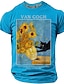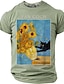 miesten van gogh auringonkukat hauska musta kissataide parodia graafinen t-paita impressionistinen tyyli kissanrakastaja lahja varastettu painos lyhythihainen rento t-paita suunnittelijavaatteet