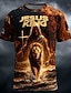 Amerikan 250-vuotisjuhla Miesten Leijona Risti kristillinen T-paita Lyhythihainen T-paita 3D-tulostus Tiukka pyöreä kaula-aukko Paita Uskonto Kausaliteetti Päivittäin Juhla Khaki Kesä Kevät Vaatetus