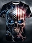 Amerikan 250-vuotisjuhlavuoden miesten Yhdysvaltain lippu -aiheinen pääkallo-t-paita, jossa kauttaaltaan printti, salamakuvio, lyhythihainen, pyöreä pääntie, siisti soturitoppi, suunnittelijavaatteet,