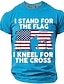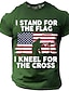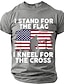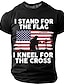 muistopäivä seison lipun edessä polvistun ristin eteen miesten Amerikan lippu polvistuva sotilas kristillinen risti isänmaallinen graafinen t-paita vintage rento t-paita suunnittelijavaatteet vaatteet