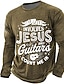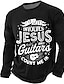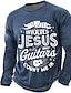 Miesten Kitara Hauska slangi T-paita Pitkähihainen T-paita 3D-tulostus Tiukka pyöreä kaula-aukko Paita Muoti Päivittäin Perus Kausaliteetti Päivittäin Katu Sininen Musta Keltainen Kesä Kevät Vaatetus