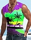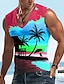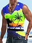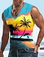 Miesten Auringonlasku Kookospalmu T-paita Hihaton T-paita 3D-tulostus V kaula-aukko Paita Trooppinen Ulkoilma Loma Havaijilainen Sininen Rubiini Kuninkaallinen sininen Kesä Kevät Vaatetus S M L XL