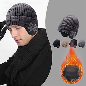 Miesten Sukupuolineutraali Korvaläppähattu Pipo Talvihatut Pipot 骷髅头毛线帽 Raudan harmaa Musta Polyesteri Kudottu Kodikas Arki-asut Bile Lumihiutale Lämmin