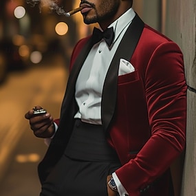 Miesten Vakosamettitakki Lovikaulus Muoti Retro / vintage Klassinen Yhtenäinen Viiva Blazer Musta Vaalean vihreä Viininpunainen Räätälöity istuvuus Yksiriviset kaksinappia
