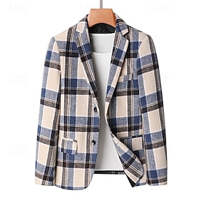 Miesten Blazer-takki Tweed bleiseri Lovikaulus Muoti Klassinen Vapaa-aika Skottiruutukuvio Blazer Tweed-bleiseri Sininen khaki Harmaa Räätälöity istuvuus Yksiriviset kaksinappia