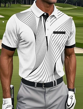 Miesten Geometrinen Viiva Polo Urheilu poolopaidat Lyhythihainen Poolopaidat Kauluspaidat Urheiluasut Vapaa-aika ulko- Urheilu- ja treenivaatteet Arki-asut Tasku 3D-tulostus Napit Kesä Sininen Musta