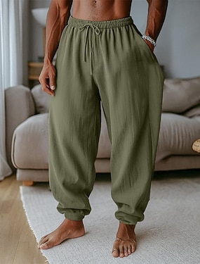Miesten Pellavahousut Housut Kesähousut Roikkuvat housut Haaremihousut Kurenauha Joustava vyötärö Tavallinen Mukavuus Hengittävä Täyspitkä ulko- Kausaliteetti Pyhäpäivä Loma Muoti Musta Apila