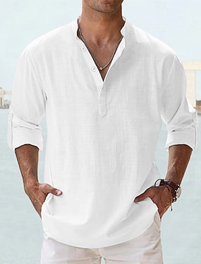 Miesten Paita Pellava paita Popover paita Kesä paita Ranta-asut Band kauluspaita Tavallinen Loma Kausaliteetti Musta Valkoinen Keltainen Punastuvan vaaleanpunainen Lyhythihainen Henley Kesä Vaatetus