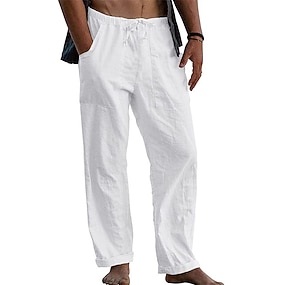Miesten Pellavahousut Housut Kesähousut Rantahousut Kurenauha Joustava vyötärö Suora jalka Tavallinen Mukavuus Hengittävä Täyspitkä ulko- Kausaliteetti Päivittäin Muoti Retro / vintage Musta Valkoinen