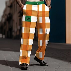 Miesten Puut / lehdet Puvunhousut Keskivyötärö Vintage Vapaa-aika Muodollinen Arkikäyttö Tasku Kesä Kevät Syksy 3D-tulostus Oranssi