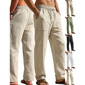 Miesten Pellavahousut Housut Kesähousut Roikkuvat housut Rantahousut Tasku Tavallinen Mukavuus Hengittävä Täyspitkä Kausaliteetti Päivittäin ulko- Loma Muoti Valkoinen + khaki Ruskea + musta