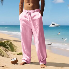 Miesten Pellavahousut Housut Kesähousut Roikkuvat housut Rantahousut Kurenauha Joustava vyötärö Suora jalka Kuvitettu Aurinkovoiteet Pehmeä Ulkoilu Täyspitkä ulko- Koti Kausaliteetti Muoti Katutyyli